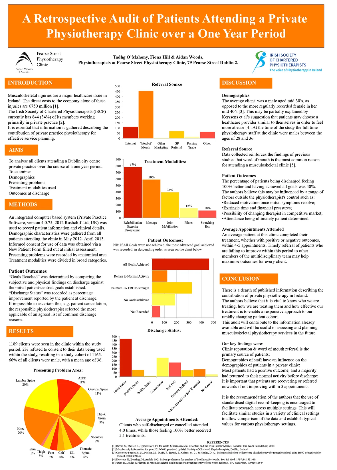 We analysed all of our clients who attended complaining of back pain over two years. This gave us information on the average cost of treatment for back pain in our clinic, how many sessions it takes to get better, and showed that those clients who progressed to Pilates classes had better outcomes than those who didn’t. Presented at the ISCP Annual Conference 2016.